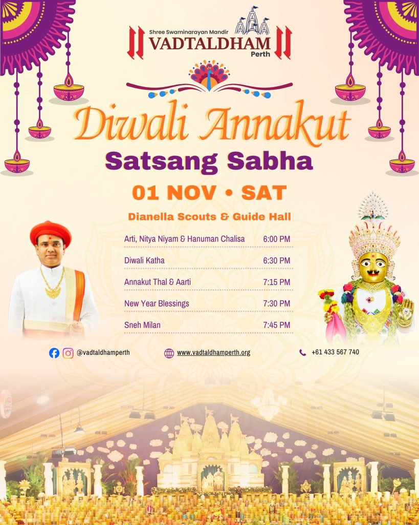 Celebrate the Hindu New Year (Nutan Varsh) and the magnificent Annakut festival with a special Satsang Sabha filled with devotion, katha, and New Year blessings.
